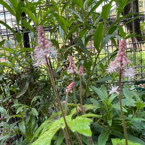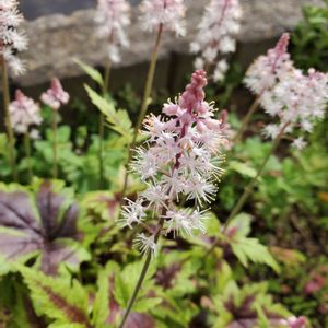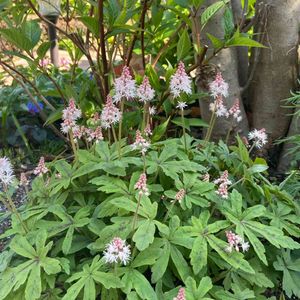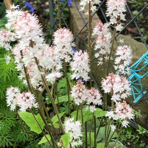 新しく仲間入りした ティアレア・ピンクスカイロケット🌸 今日もお元気でお過ごしください🍀 🏷木曜モフモフ 🏷春色ピンク 🏷乙女色クラブ 🏷星屑ファンタジー 参加させていただきます 小さな苗からお迎えして咲いてくれました 白〜淡ピンク色の花穂が美しく切れ込みの入る葉も美しく花期以外にも楽しめます ティアレラとヒューケラは葉がよく似ており、花が咲いてない時期に葉だけで見分けるのは難しいです。 花の形は大きく異なり、ティアレラは花びらが開いいて咲きますが、ヒューケラはスズランのように花びらがやや閉じた壺形をしています。 分類上は属から異なり、ティアレラはユキノシタ科ティアレラ属、ヒューケラはユキノシタ科ツボサンゴ属(Heuchera属)です。ティアレラとヒューケラを交配した「ヒューケレラ」という品種群もあります。 Garden storyより抜粋