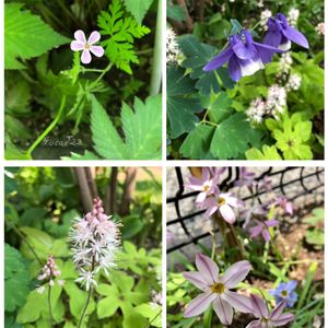 5月に咲いていたお花達①🌼 まとめて…(✾♛‿♛)ノ*💗 左上から時計回りに… ヒメフウロ✨ 葉が大きいけれどお花は小さくて可愛い💕 オダマキの青は綺麗✨ ピンクのハナニラ✨ 咲かない青は違う所に植えているのに… 久しぶりに青を見た…ここの場所にまとめよう✌️ 清楚なティアレア✨ 今日はコメント閉じます(*ᴗˬᴗ)⁾⁾ペコ