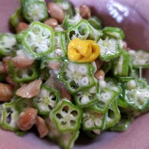 ふくさん食堂 二品目は、 いただき物の オクラ。 軽く茹でて 出し醤油で、 薄味で、浸しました。 アッサリと、 箸休めに。