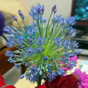 先日のスターチスがドライになってずっと飾っていたのですが、お花を足してみました。偶然だったのですがギガンジュームとスターチスは両方とも自分の誕生花❗️そして青いお花の名前は不明です。