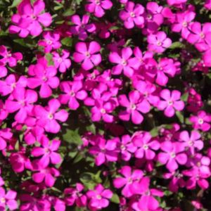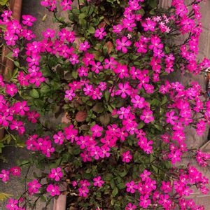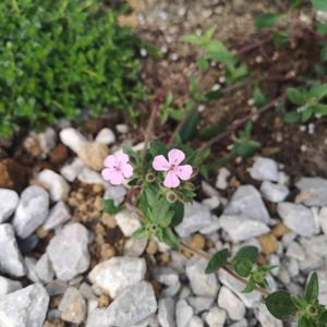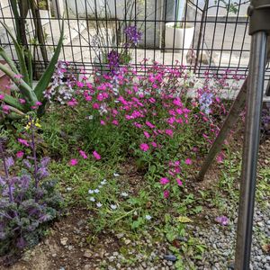 ピンクの花が4鉢咲いた。ツルコザクラ、シレネペンデュラ、シレネピンクパンサー、残りの一つは?その入手先が右上の鉢 わかりますか?