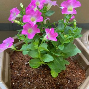 四月に植えた、寄せ植え 切り戻しをして、ペチュニアマドンナの宝石が盛り返してきた🤗 かわいい🥺💕