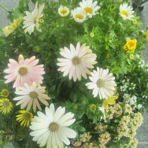 親友の職場に飾る寄せ植え💐 上の子を飾り付けして 下の子に変身💐 賑やかになりました💕 喜んでくれるかな( ◠‿◠ )