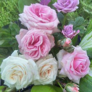 職場の女の子が使ってと ドライのカスミソウを持ってきてくれた 2色咲きミニバラと一緒にドライアレンジ