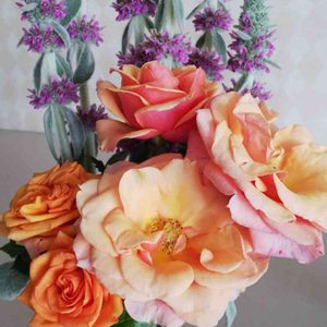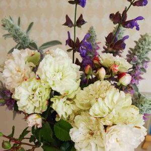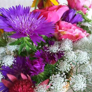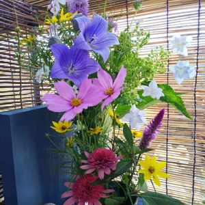 職場に飾る花を家でパチリ📸 白いのは、蕎麦の花で 種からです、アスターも❕