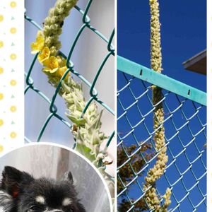 「ビロードモウズイカ(天鵞絨毛蕋花)」とワンコ✨🌼🐶 穏やかな小春日和の日に、カーテンを頭で持ち上げて外を見ていたワンコとのコラボです🐶🌼☺️ (ワンコの向きを左右逆転させてます😅) フェンスへの巻きつきは、台風に備えての防衛本能の成せる技でしょうか🌬➰😄 ゴマノハグサ科モウズイカ属 原産地 : 地中海沿岸地方 花言葉 :「夏美人」「大器の風格」「気立てのよさ」 「全ての物をあなたに捧げる」 ✳︎ 越年草。明治初期に観賞用として渡来 ✳︎ ハーブの一種だが、毒があり食用不可 ✳︎ 傷などの炎症に効果的な塗布薬になる 🏷「ワンワン祭り」 🏷「棒の日」 🏷「木曜モフモフ」に参加します 左 : 2021年 9月20日 右 : 2021年10月20日