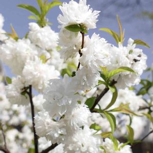 「ニワザクラ(庭桜)」✨🌸❣️ 満開になったら撮ろうと、待っていました。 少〜しだけ遅かったかな、と思える部分がありますが、小さいけど華やかな素敵な花ですね🤍❣️😊 バラ科サクラ属 花言葉 :「高尚」「秘密の恋」 ✳︎✳︎✳︎(庭木図鑑 植木ペディア より)✳︎✳︎✳︎ 中国北部及び中部を原産とするバラ科の落葉樹で、ニワウメの変種とされる。背丈が大きくならず、狭い庭でも育てることができるためニワザクラと呼ばれるが、ソメイヨシノなどのサクラよりも、ユスラウメやニワウメに近い雰囲気を持つ低木の一つ。