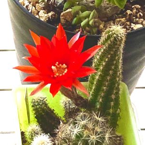 白檀🌵 大きな蕾の付いてた白檀さんが咲きましたヾ(*´∀`*)ノ❤鮮やかな赤いお花が素敵です(⁎˃ᴗ˂⁎)🌵❤今年も休みの日にちゃんと咲いてくれました😆🌵