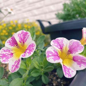 昼活です。カリブラコアとペチュニア、全ての株の花が咲き始めました。黄色のストライプやっぱり買って良かったなぁ。
