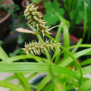 スゲの仲間、野生ではもっと長く刈り取り干して、籠等編む材料になるとのこと。