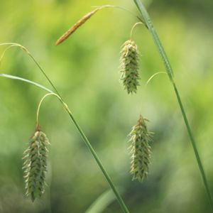 ゴウソ 郷麻 カヤツリグサ科 スゲ属 頂小穂 雄性、線形 側小穂 雌性、円柱形 果実5~6月 ピンぼけてしまいましたが 垂れ下がっている頂小穂、側小穂ともに可愛い♡
