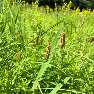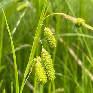 郷麻 ゴウソ カヤツリグサ科 スゲ属 湿地に生える植物 花期5~6月 ⬅️頂小穂は雄性、線形でやや垂れる ➡️側小穂は雌性、円柱形で長い柄があり垂れ下がる 側小穂は小田原提灯に似ていて可愛かったです