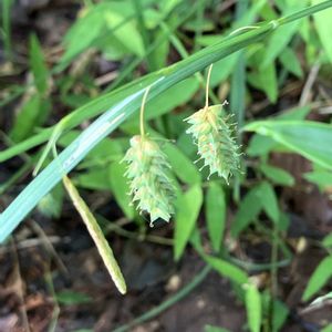 ゴウソ(郷麻) 別名:タイツリスゲ 花期:5〜6月 ・頂小穂は雄性 線形で長さ2〜4㌢ ・側小穂は雌性 円柱形で長さ1.5〜3.5㌢ 幅5〜7㍉ 柱頭は2裂する 柄があって垂れ下がる ・ゴウソの名は田畑の周りに生える麻という意味で、葉を使って物を結び束ねるのに用いられたことによる 見たいお花があって出かけてきました♪ 先日フォロワーさまが投稿された ゴウソで良いのでしょうか? 似たのにホシナシゴウソというのがあるようです。 違ってたら教えてください🙇♀️