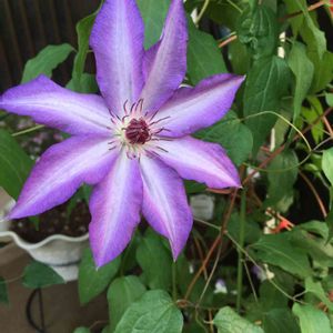クレマチス プリバルチカ 2番花、白の筋がなくなった(・・;) 紫の縁取りで白い筋だったのに。 かわいかったのに~。 クレマチスはこんなことがあるのかな?