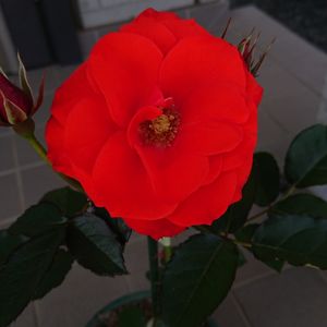 【薔薇】《バラ科》 〝オリンピックファイヤー” 独 タンタウ 1992作出 咲き方 四季咲き 花の色 赤 花の形 丸弁カップ咲き 大きさ 8cm 花の香り 微香 オリンピックの聖火のような 鮮やかな赤い色のバラ🌹。 2022.5.11