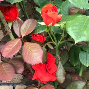 この朱赤が独特の薔薇🌹 とっても多花で春から秋口遅くまで咲いてます。