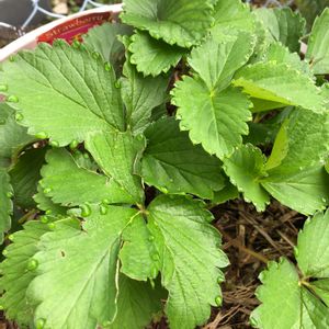 10/27(日)雨あがり🌫 おはよーございます(^O^) 小さい庭の朝の見廻りしています。今日の予報は曇り後晴れ☀️夏の猛暑を潜り抜けた苺🍓とちおとめが復活してきました。口に入った実は未だ数個です^_^