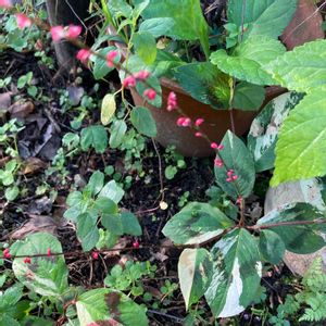 斑入りミズヒキ 山野草店の店主から、あげるよ〜って頂きました😊 この場所はタデ科の植物が良く育ちます。 去年はイヌタデがたくさん咲きましたが 道ゆく人に草だらけだねと言われてしまったので 今年は少し抜きました💦