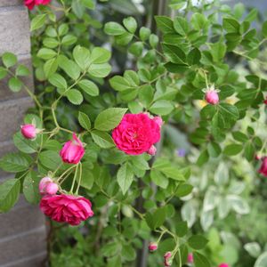 一昨年の秋に挿し木したミニバラさん♪ 可愛いお花が咲き始めました! グングン枝を伸ばし、2メートル近くになり。 物干しポールに固定しています(*^。^*) 蕾もいっぱいあるので、長い間楽しめそうです!