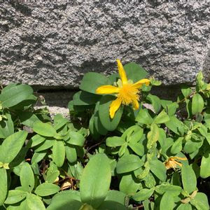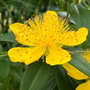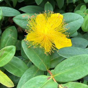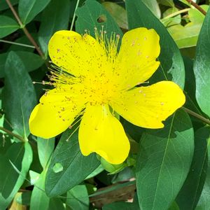 おはようございます♪ 紫陽花と同時期に咲き出しますね♪ 💛西洋金糸梅(セイヨウキンシバイ)💛 💛ヒペリカム・カリシナム💛 オトギリソウ科 落葉低木 雄しべが花弁より長く葯は赤色を帯びてます 葉葉対生してます