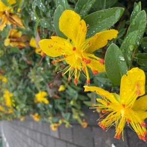 mimozaさんの… 🏷️0の付く日は雨粒の日 🏷️雨粒シリーズ☆ に…💧💧 昨日…出逢った… セイヨウキンシバイ💛💛🌱💛💛🌱💖 さん…〜赤い〜蕊が特徴 !!🙋🏻♀️😊!! ☔に濡れて…艶やかに… 💛💛💛🌱💛💛💛💖🌿 Mr.マーさんの… 🏷️艷やかな華曜日の花 🏷️可憐な火曜日 🏷️雨に咲く花 🏷️幸せの黄色いお花