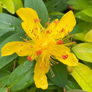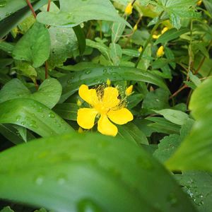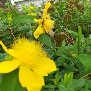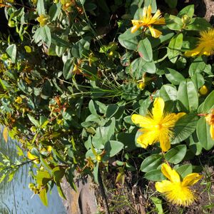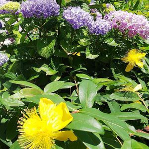 こちらも、すっごくカワイイ黄色🟨 ビヨウヤナギかなと思ったけど ヒペリカムカリシナム(セイヨウキンシ バイ)ですか❔ 調べていくと、だんだん頭痛くなって きた😖 でも!カワイイ〰️🟨