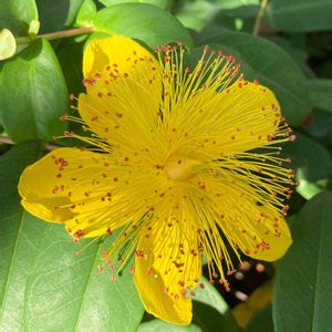 去年も「ビヨウヤナギ」と信じ投稿 今年もそう思ったが一応レンズ先生に聞いたらまさかの答え😲 違いは雄しべのカールか直線か 雄しべの先葯が赤橙色はセイヨウキンシバイと言うのも🤒 花を見分けれる人って凄いです😯