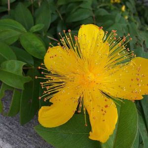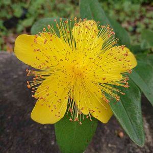 散歩中に、出会ったお花。 セイヨウキンシバイ🌼 おしべが、すごいですね❗️