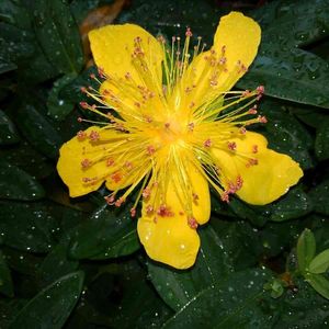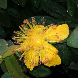 セイヨウキンシバイ ヒペリカム・カリシナム 7月の長雨せいか?今頃、花を付けている。 最盛期より、小さな花です。 種を付ける、不思議なキンシバイ。