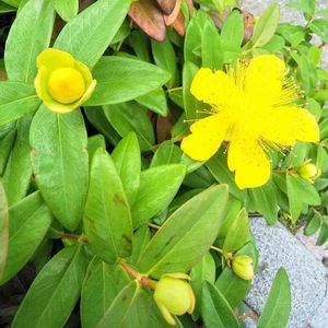 ずっと気になっていたコロンとしたつぼみ。今日通りかかったら咲いていました。 こんなに大きな花が咲くと思っていなかったのでびっくりです! 調べたら ビヨウヤナギ(未央柳)←これは間違っていました。追記 オトギリソウ科オトギリソウ属 小さなつぼみなのにこんなに鮮やかな花が咲くんですね。 (23:50追記) 皆さんの投稿された写真を見ると、つぼみの形が違います。それからビヨウヤナギの高さが1mとあるのですが、これはもっと低いです。初めは木本だと思いませんでした。 以上のことから考えて セイヨウキンシバイの方が正しいのではないか?という判断をしました😅 オトギリソウ科オトギリソウ属は変わりません😊