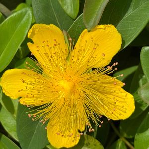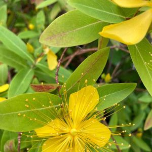 これは… セイヨウキンシバイ でしょうか…蕊に特徴が… 先が赤く❣️なる…🙋🏻♀️ 別名… ヒペリカム・カリシナム とも… 🏷日曜ビタミンカラー♪ 🏷しべ(蕊)美人♪ 🏷幸せの黄色いお花 🏷つなぐ、つながる 🏷ありがとうの花❣️ 🏷ニコニコ日曜日 を(⌒▽⌒)🤗😊!!✌ ねぇ…💛💛💛🌿…