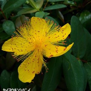 セイヨウキンシバイ(西洋金糸梅、学名:Hypericum calycinum(ヒペリカム・カリシナム)とは、ヨーロッパ原産で、初夏に黄色い五弁花を割かせるオトギリソウ科オトギリソウ属の小低木です。別名で、ヒメキンシバイ(姫金糸梅)やヒペリカム・カリシナム(Hypericum calycinum)とも呼ばれます。 ビヨウヤナギとサイズも変わらず、形態も限りなく似ていますが、おしべの数が多いのと、おしべの先端(やく)の色もピンク色。 ビヨウヤナギ(未央柳・美容柳、学名: Hypericum monogynum)はオトギリソウ科オトギリソウ属の半落葉低木。