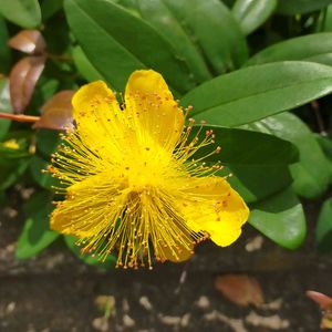 街路樹の根元に植えられていました🎵 キンシバイより蕊が赤くて長いので華やかな印象です✨
