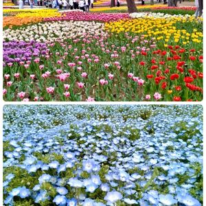 ひたち海浜公園のネモフィラ 一度は行ってみたかった! とっても綺麗〜✨ 圧巻でしたっ🥰 チューリップ🌷も ギリギリちょっと咲いてましたよ ただやっぱりGWは どこも混んでるのよね……