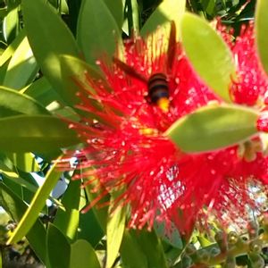 今日のお出掛け先🌼 ブラシの木にハチ🐝黒と黄色のシマシマ(||゚Д゚)ヒィィィ!