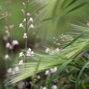 ホルディウム ユパツムの花穂が光に輝いて、とても綺麗。 リスの尾という別名もあるらしく、 ふわふわのリスのシッポ、そのものの印象ですね! 麦の仲間で、暖地だと夏越せないらしいですが、 寒冷地の夏は越せるのかな。冬は越せるらしいです。