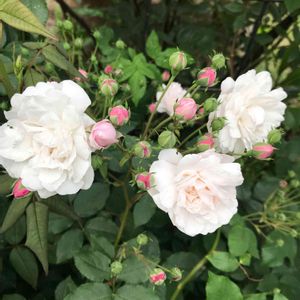 いつも「いいね」をありがとうございます😆 N アリスターステラグレイ 咲き始めは、クリーム色、時間が経つにつれて、白色になります☺️ バラに興味を持ち始めた頃、探し求めて手に入れた、思い出があるバラ🌹 でも、今ではちょっと愛着が…😅 隣の建物に面しているので、場所が悪いのか❓枝が大きく張る割には、密に花を付けるわけではなく、ゆったりとしています。 風通しは良いですけど🍃