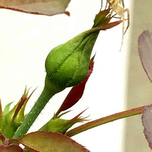 オールドローズのつぼみの先に クモ😱