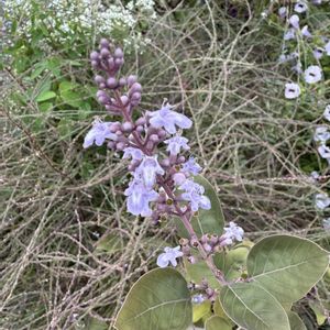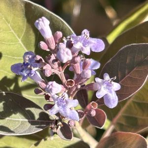 西洋ニンジンボクパープレア♪ 花が咲いた。 去年迎えた鉢植え。 常緑だけど冬はつるっぱげになった。去年の冬は珍しく氷点下になったからかもしれない。 夏に表に移したら、西陽が当たるせいか葉が落ちた。 寒さにも暑さにも弱いのか? ただ生育旺盛なようで、すぐに水切れする。 結局葉を出して花も咲いた。 強いか弱いかようわからん。 さて来年はどうかな?