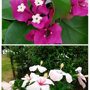 木曜なので木の話 木を4つ~😁キキキキ 1枚目 ↑ブーゲンビリア 白い花が3つ咲き揃いました 赤い部分は花でなくは苞というそうで 3枚の苞に囲まれてるのね🌼ほぉ~ ↓ハイビスカス ハイッ 花数が増えて6つ咲きました🙌 けどね、雨に濡れてヘナ~ってなってます😆 2枚目 ↑紫陽花 淡いピンク➡ピンク➡紫 変化を楽しみましたが そろそろ終わりでしょうか~ ↓ポポー 食べた種を植えたんです 1年過ぎました 前回投稿したときは左の苗の方が元気でしたが ある日突然 葉っぱが落ちて枯れてきました とうとう最後の1本となりにけり~ 残った右側の苗が元気なうちに畑に植え付けようと思いますよ~😉✨