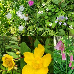 《歳時記》 5月末頃から咲いてるのもあるけど… ①今回載せたもの ②カワラナデシコ ③ヤマアジサイとドクダミ ヤマアジサイは実生。ドクダミは勝手に生えてるだけ。 ④木陰に咲くホタルブクロ(赤) 白の方が先行して咲いてるんだけど写真撮ってない😅 ⑤キンシバイ⬆️とタイリンキンシバイ(ヒペリカム 'ヒドコート')⬇️ キンシバイとタイリンキンシバイは別種。タイリンキンシバイは3種間交雑または交配種。