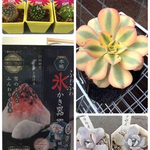 こんばんは☆ 今日も暑かったですね!扇風機買いに電気屋さんに行ったらレトロで可愛いかき氷器を見つけて買っちゃいました(✿´ ꒳ ` )♡ 左上のサボテンはダイソーに行ったのでなんとなく連れて帰って来ちゃった子達🙄 右上は名無しちゃんを買ったんだけど多分サンバーストかな? 右下は粉ハゲ徒長上等の汚いラウイさん。徒長は最初からだけど粉ハゲは主に私のせいです🤗 ら…来年には綺麗なラウイさんになってると良いな…( ꒪Д꒪)