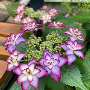 紫陽花 ひな祭り 去年シーズンも終わり頃にやってきた紫陽花💠 株は大きくなりましたが花は3つくらい 秋色まで楽しんだから厳しいかと思ってました ブラックダイヤモンドとクイーンズブラックが大きくなった割に花をつけなかったので花が見られるだけありがたい☺️
