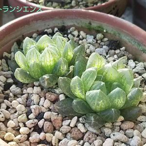 おはようございます。 蒸し暑い朝です。 ハオルチアのトランシエンスさん。ずっとベランダ出してるから色が薄いけど、、むしろ色が抜けてちょっと大人っぽい感じ。これもこれで素敵。