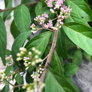 ムラサキシキブのお花 紫色の丸い粒しか印象がないですが こんなかわいいお花が咲くんですねぇ〜 (*´꒳`*)♡