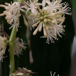 ドラセナ 幸福の木🌿 白い花が咲きました🤍🤍 ドラセナ フレグランス マッサンゲアナ 強い香りは名前の由来ですね😊 午後4時過ぎぐらいから咲き始める様です! 2日目に確認しました😆 撮影 12月1日 午後5時半頃