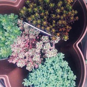 ちょっとセダムで寄せ植えしてみました。😁🎵 セダムではないけど、メインに黒法師を使用。 その周りにはセダム属 春萠、プレミアムサキュレンツ、 ミモザ、ステファニーゴールド、フイリマルバマンネングサなど、6種類使いました。😌⤴ 上手くモリモリになるかな~😅 プレミアムサキュレンツは後ろに配置したので、画像では見にくいですが…😅