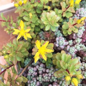 思い返せば、これが初めての寄せ植え。 みなさんのステキな寄せ植えを見てると、これを寄せ植えと言うにはおこがましいですが 💧 と言っても、もはやその面影すらなし(థ ェ థ) 丸葉万年草がちょろっと。 ほぼステファニーゴールドの、すっかりワイルドな鉢になってしまった。 まあこれはこれでいいか (^^;)