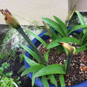 1月10日に水やりを始めたアマリリスちゃん💚やっと花芽🌸が現れました。 この子は子どもで、孫も2つ見えます💚 親は、我が家に来て6年目になります。
