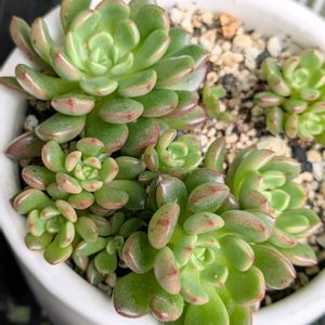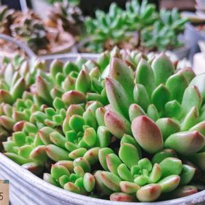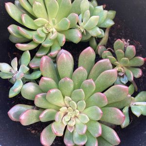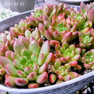 1枚目pic 葉挿しで増えたピンクルルビー🤗 6月でぎゅうぎゅうだったけど夏でも元気元気💪 鉢増しすると大きくなるからしばらくこのまま😅 2枚目pic 古株の方は全然大きくなりません😂 去年は葉焼けしてかわいそうだったけど今は綺麗に復活🩷 こっちは秋になったら植え替えしよう!(たぶんw) 1、2枚目共に5号鉢です